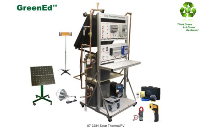 Model 07-3284, the Solar Thermal Training System is purposely designed to address the interests of construction, plumbing, renewable energy or any other program wishing to build an awareness of Closed-Loop, Drain Back systems Solar Thermal systems.